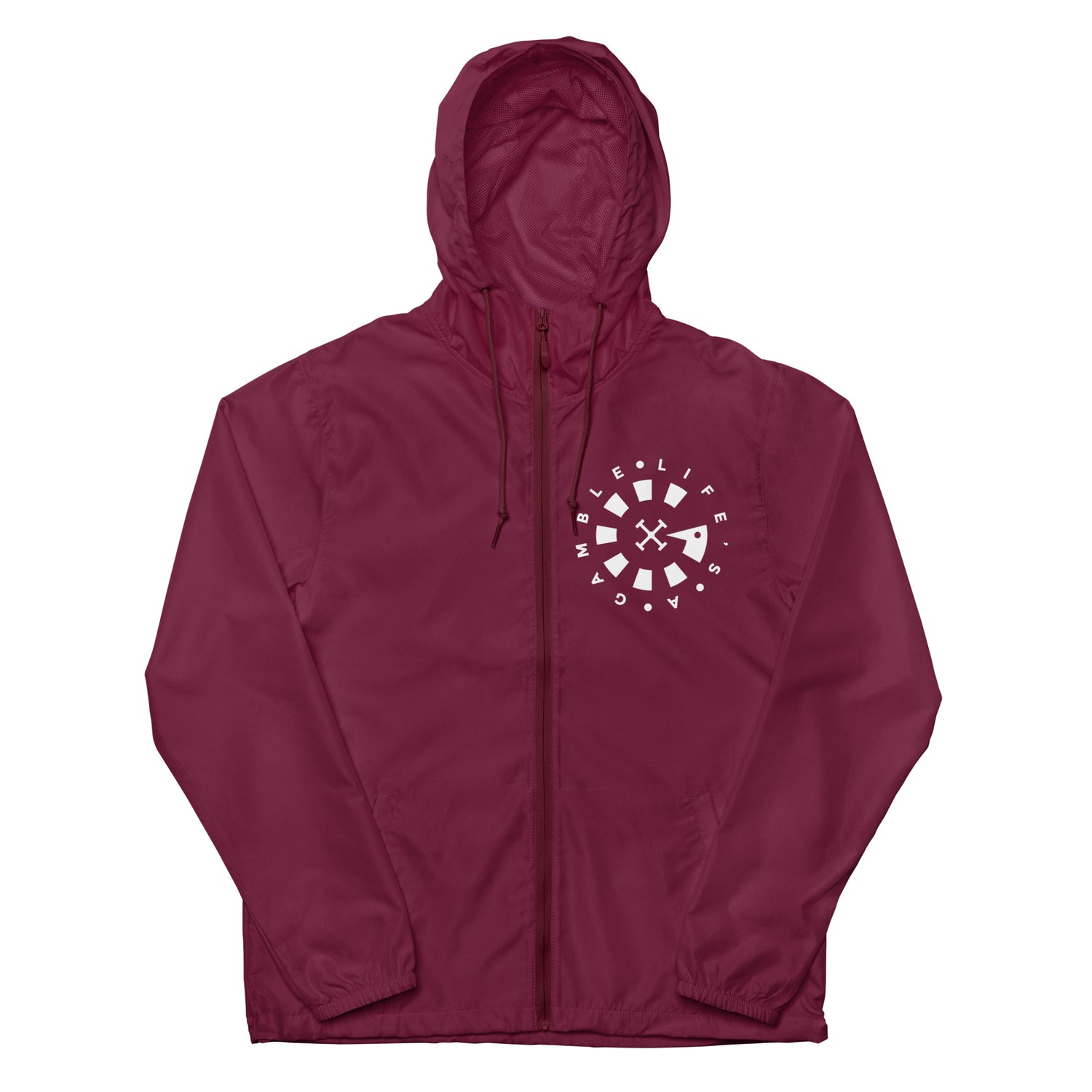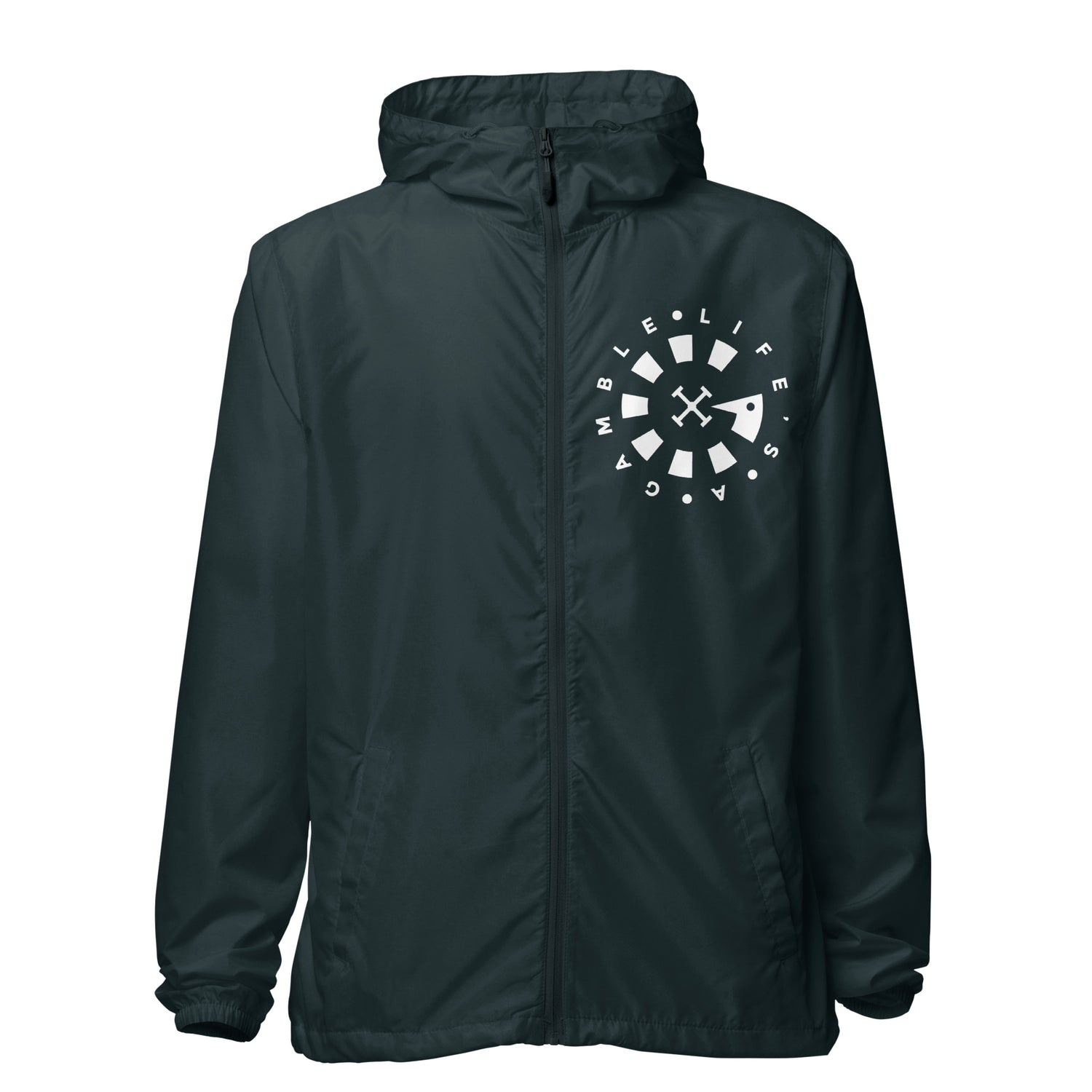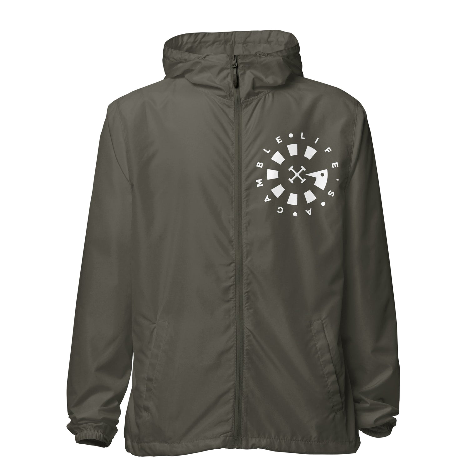 LAG Life's A Gamble Circle White Unisex lightweight zip up windbreaker