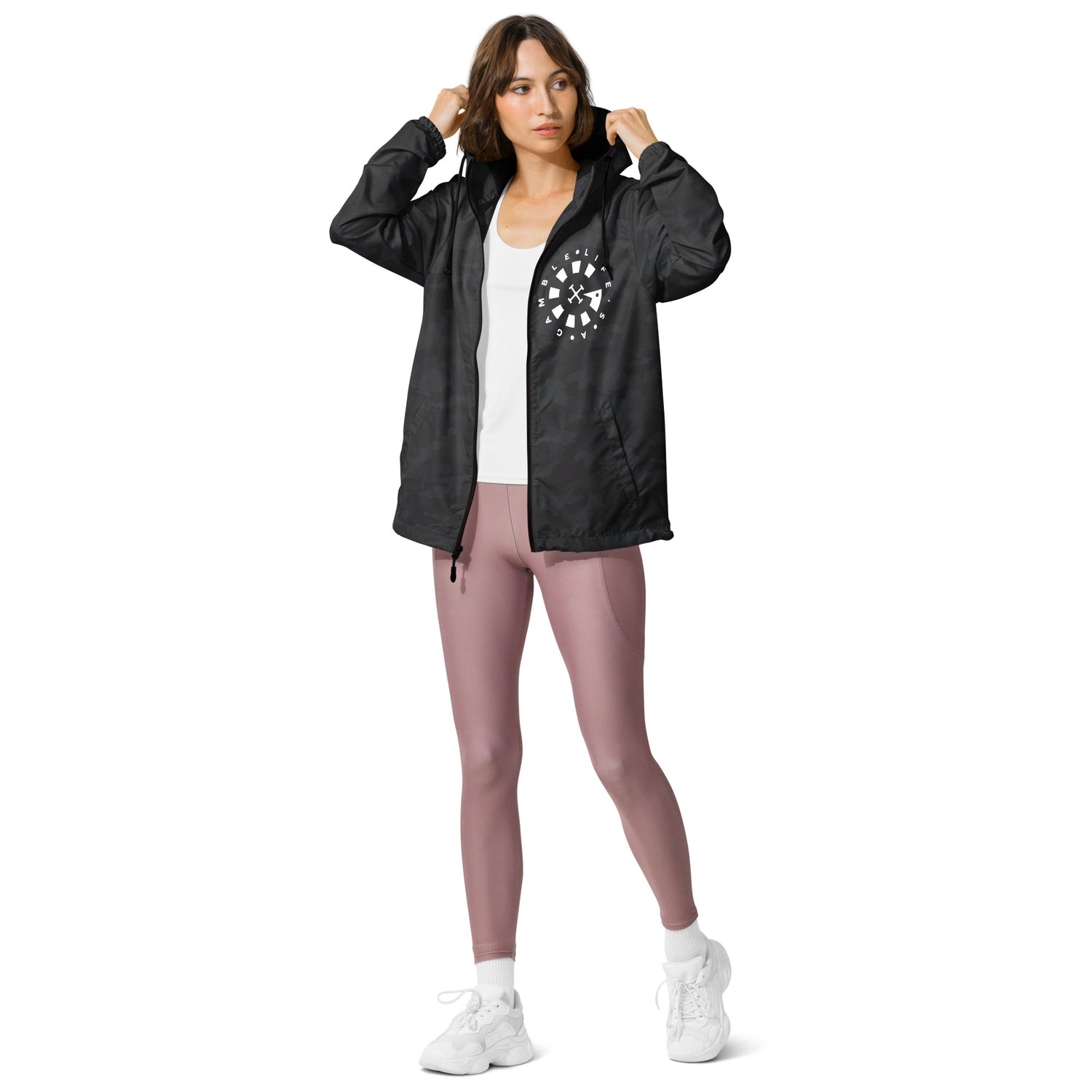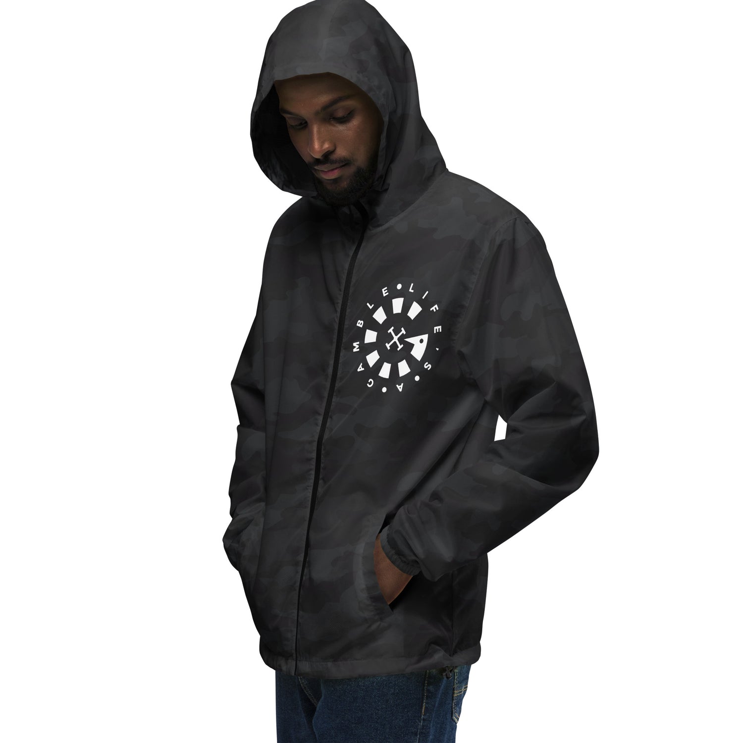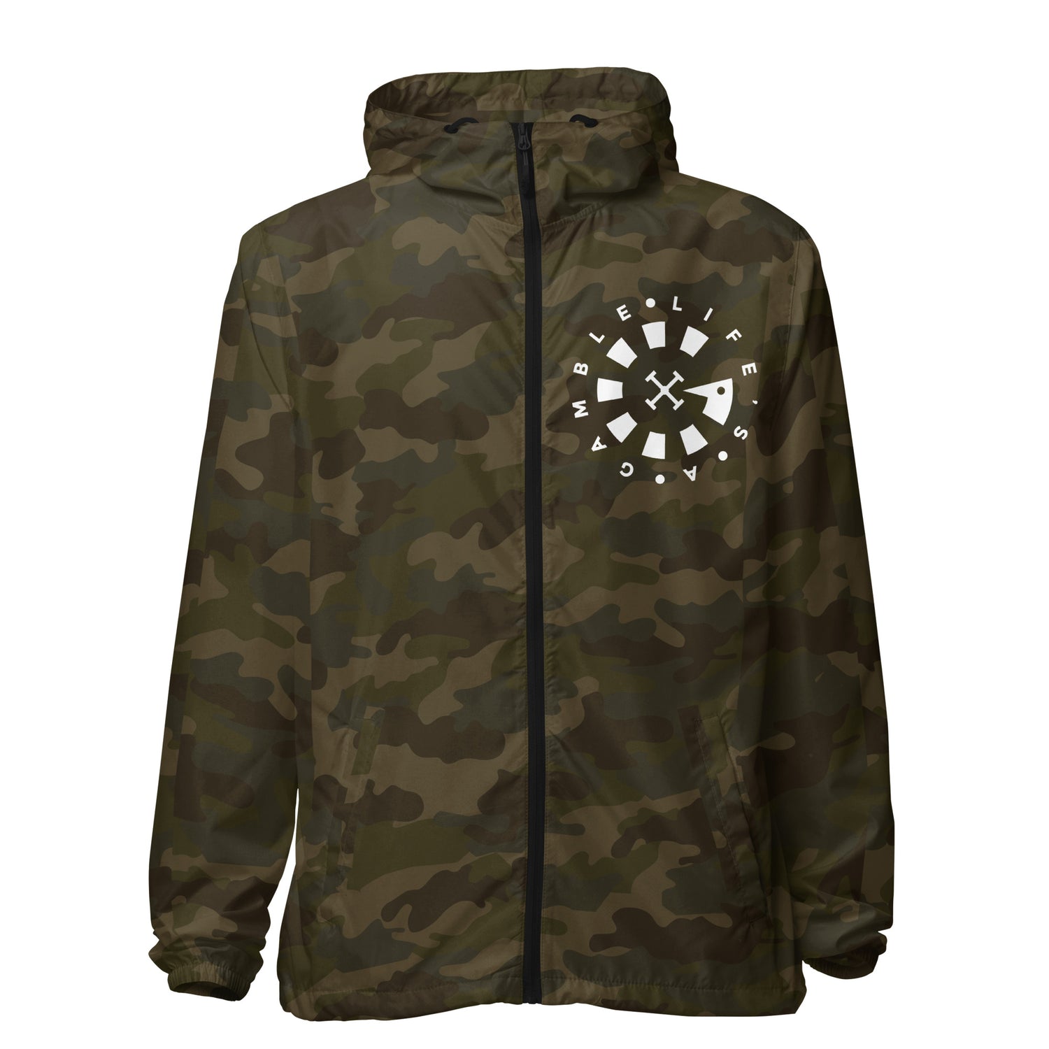 LAG Life's A Gamble Circle White Unisex lightweight zip up windbreaker